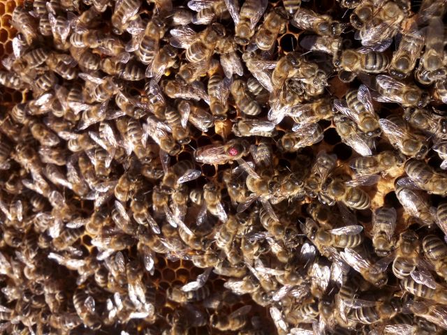 Včely s matkou při jarní prohlídce vyzimovaných oddělků 21. 3. 2019